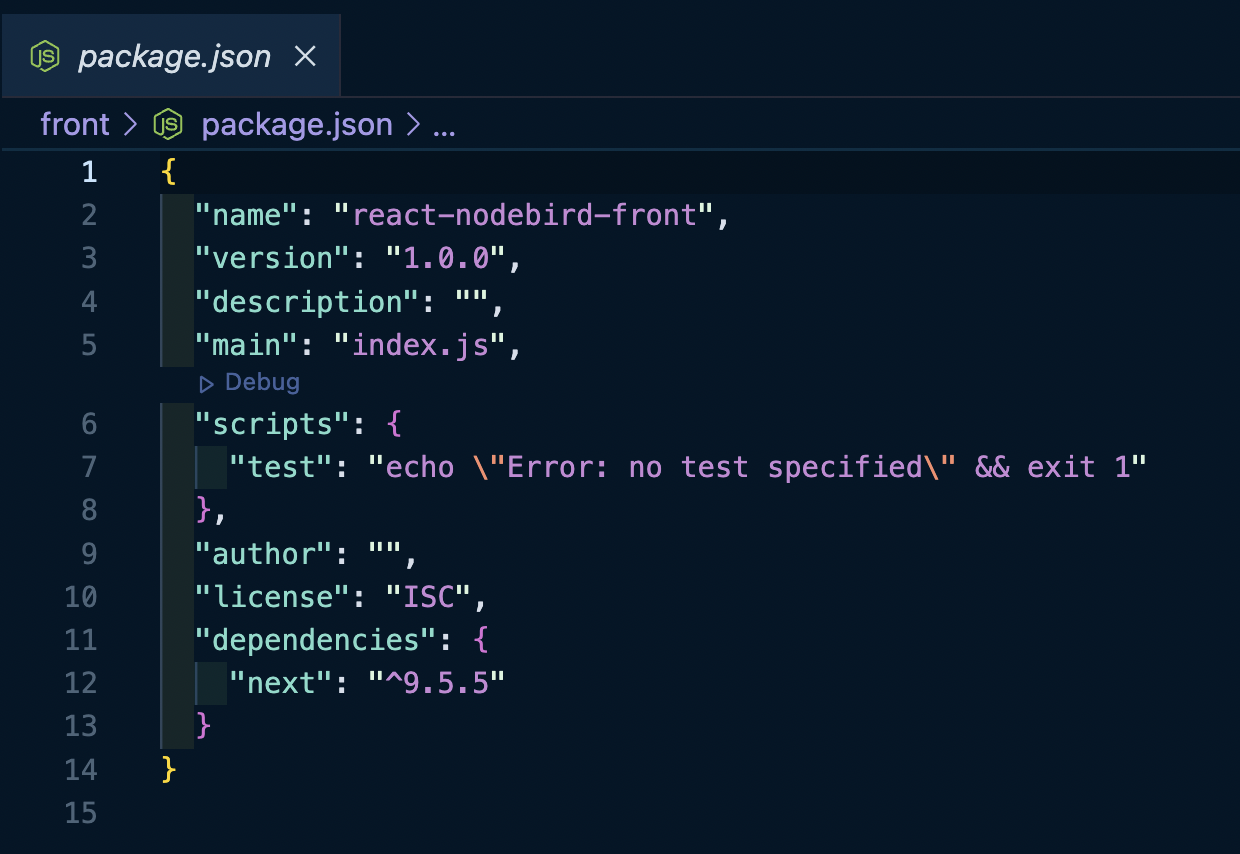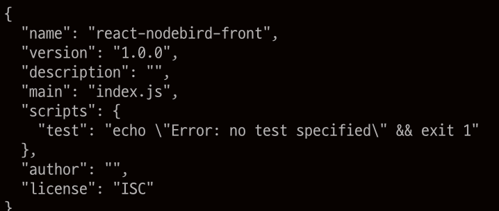 다음과 같이 입력하면 'package.json' 파일이 만들어진다.