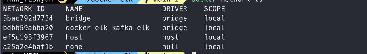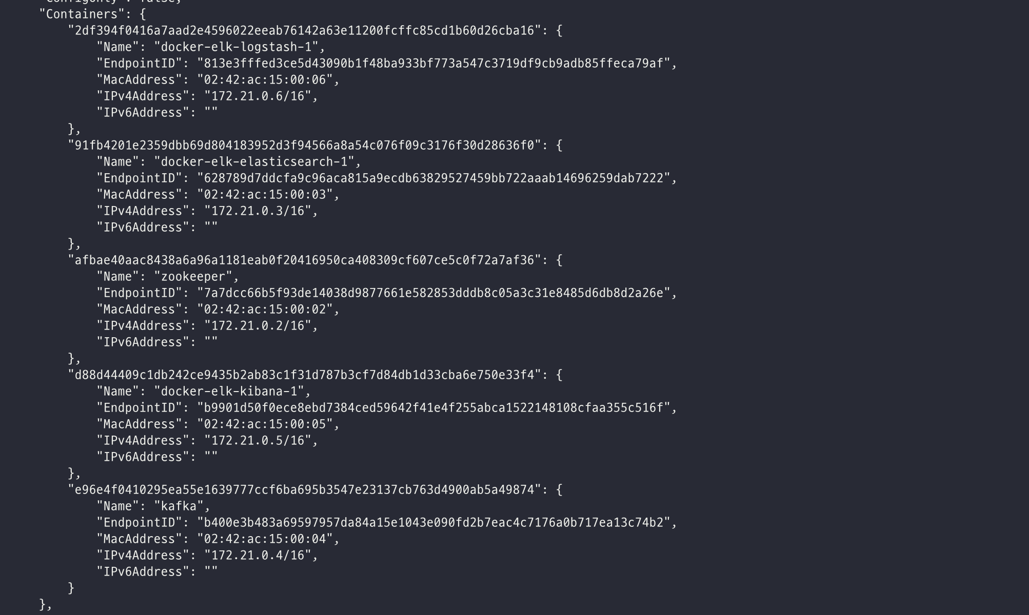 특정 네트워크 확인하고자 한다면 다음과 같이 입력한다. (docker-elk_kafka-elk)